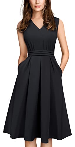 HOMEYEE Vintage 50-tals keps ärm cocktail retro med ficka utsvängd klänning A196, Svart, M