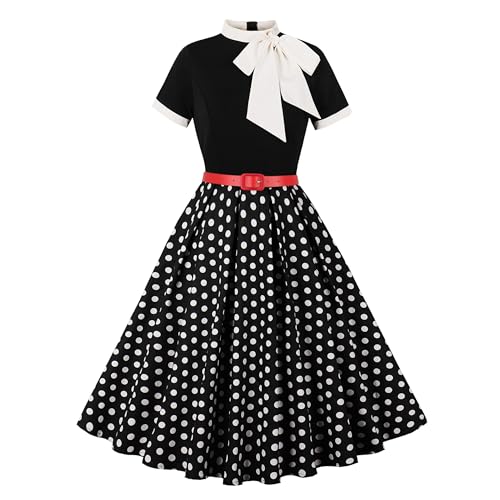1950-tals klänningar för kvinnor prickiga midi-klänningar retro 50-tal 60-tal rockabilly cocktailklänning ärmlös vintage bal swing festklänning svart solklänning, Svart, M