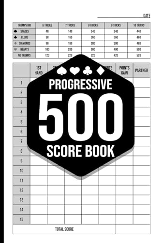 Progressive 500 Score Book: Scorepad for Progressive 500 – 100+ Game Pages for Card Lovers and 500 Enthusiasts