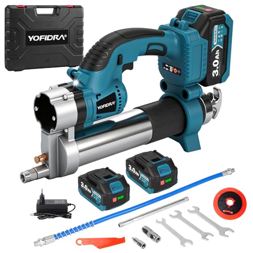 Yofidra 500W Sladdlös Fettspruta, 10000 PSI Elektrisk Fettspruta, med 2 x 3,0Ah Batterier och Laddare, 600cc Fettbehållare, 170 ml/min Flödeshastighet, Smörjverktyg för Lastbilar, Jordbruk och Industr