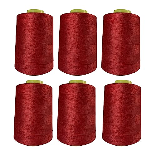 6Sytrådsspolar (4500 meter/rulle), Polyestertråd med hög motståndskraft, Trådrullar för sömnadsarbete, (6 stycken, röd 148–5000Y)
