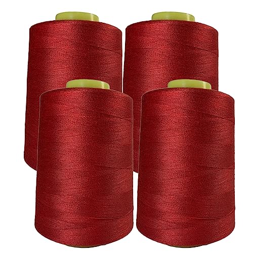 4 Sytrådsspolar (4500 meter/rulle), Polyestertråd med hög motståndskraft, Trådrullar för sömnadsarbete, (5000Y - 4 Rullar Röd 148)