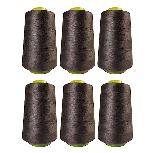 6 Sytrådsspolar (4500 meter/rulle), Polyestertråd med hög motståndskraft, Trådrullar för sömnadsarbete, (6 stycken, brun 303–5000Y)