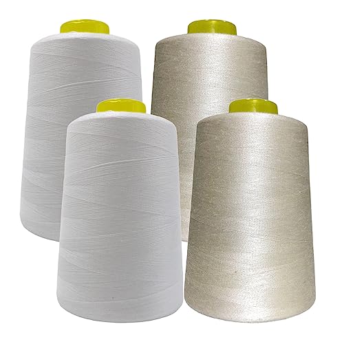 4 Sytrådsspolar (4500 meter/rulle), Polyestertråd med hög motståndskraft, Trådrullar för sömnadsarbete, (5000Y - grädde)