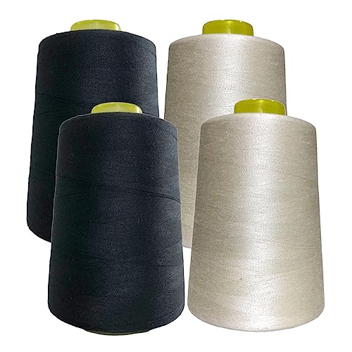 4 Sytrådsspolar (4500 meter/rulle), Polyestertråd med hög motståndskraft, Trådrullar för sömnadsarbete, (5000Y, Svart + beige)