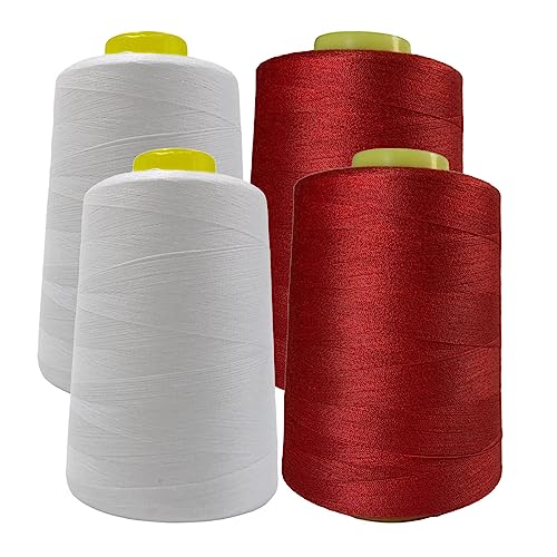 4 Sy Garnrullar, Hög Styrka Sömnad Tillbehör, Varje Tråd Coil Har 4500 meter, För Professionell Användning Eller Hemma, Hantverk, Klädsel, (2 Vit + 2 Röd 101 148-5000Y)