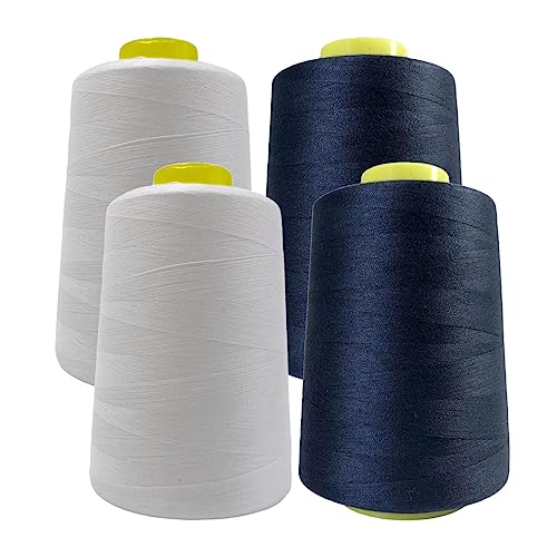 4 Sytrådsspolar (4500 meter/rulle), Polyestertråd med hög motståndskraft, Trådrullar för sömnadsarbete, (4 enheter, 101332 vit svart-5000Y)