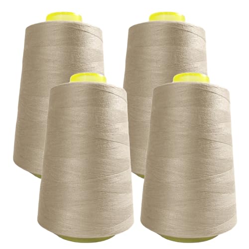 4 Sytrådsspolar (4500 meter/rulle), Polyestertråd med hög motståndskraft, Trådrullar för sömnadsarbete, (4 stycken, beige 3465–5000Y)