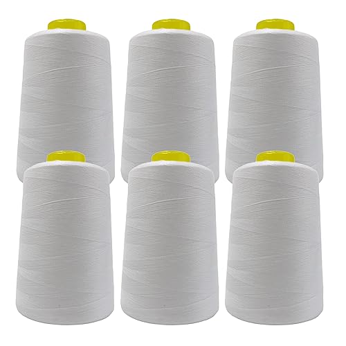 6 Sytrådsspolar (4500 meter/rulle), Polyestertråd med hög motståndskraft, Trådrullar för sömnadsarbete, (6 stycken, vit 101–5000Y)