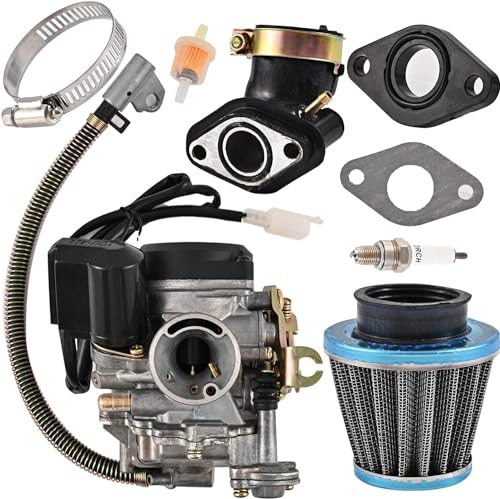 Trkimal GY6 50CC 49CC förgasare till 139QMB 4-takts scooter, ATV, moped, gokart, Taotao-motor, 18 mm förgasare, 1 inloppsrör, 1 luftfilter, 1 bränslefilter, 1 tändstift, 2 tätningar