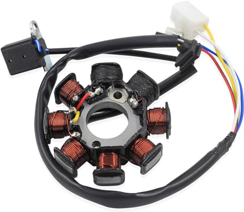 Trkimal tändning stator Magneto 4-tråd AC 8-pol spole för GY6 49cc 50cc 80cc 125cc 150cc139QMB 147QMD 152QMI 157QMJ motor, GY6-stativ lämplig för Scooter moped ATV Dune Buggy Go Kart