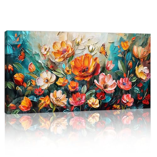 Stora inramade färgglada blommor kanvas väggkonst, vibrerande vintage blommiga botaniska väggmålningar orange röda vallmo bilder på tryck kanvas affisch dekor för vardagsrum sovrum hall 100 x 50 cm