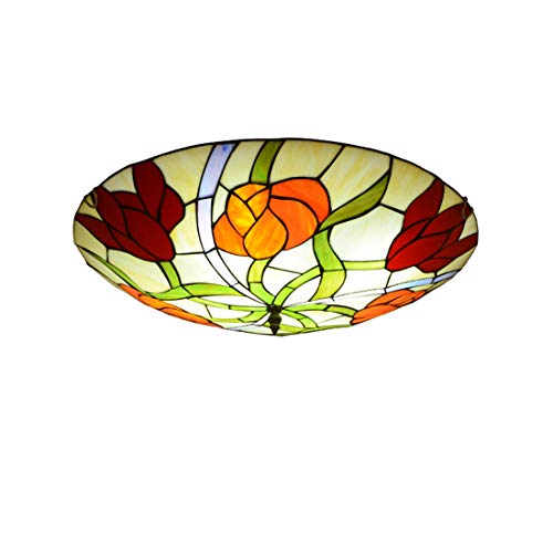 Taklampa, Tiffany-typ rund taklampa, dimbar glastavla metall hall taklampor för sovrum kök badrum, E27 sockel, 50 cm
