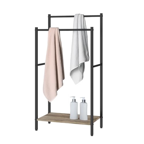 SoBuy Skobänk med sits, skohylla smal med lagringsutrymme – fällbart fack skoskåp – sittbänk med stoppning för hall, sovrum – 60 x 24 x 50 cm, upp till 118 kg, Sonoma-ek + grå, FSR199-N