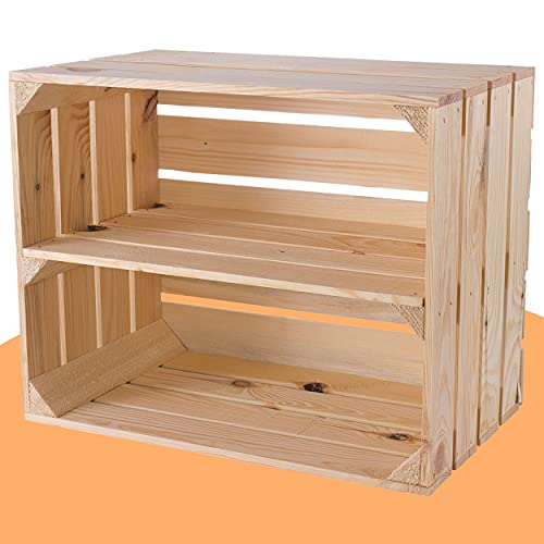 Naturlig fruktlåda med mellanbotten, 50 cm x 40 cm x 30 cm, vinlådor, naturliga obehandlad, ljus hylllåda, trälådor som väggbräda, stabila dekorativa lådor för hall/vardagsrum