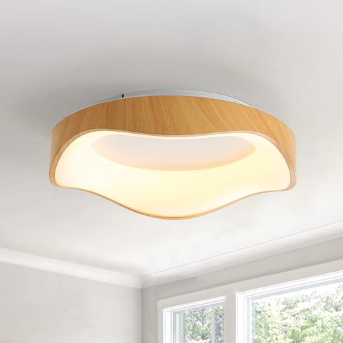YYUTLUO LED Taklampa Trä, Topp 360° Glöd Rund Naturlig Trälampa | Dimbar med fjärrkontroll 2700K-6500K, 36W | Vardagsrum, matsal, hall, hem, kontor, barnrum (Ø50cm)