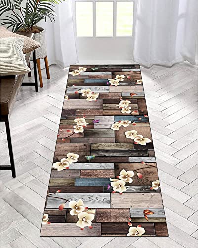 Matta, löpare, hall, kök, 3D, träådring, blommig, halkfri, korridor, gångmatta tvättbar, modern, sovrum, vardagsrum, löpare, matta, bredd 40 cm/50 cm/60 cm/70 cm/80 cm/90 cm/100 cm