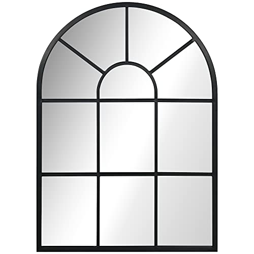 HOMCOM Välvd väggspegel, 70 x 50 cm, bågspegel, industriell stil, välvd fönsterspegel med metallram, för vardagsrum, sovrum, hall, svart
