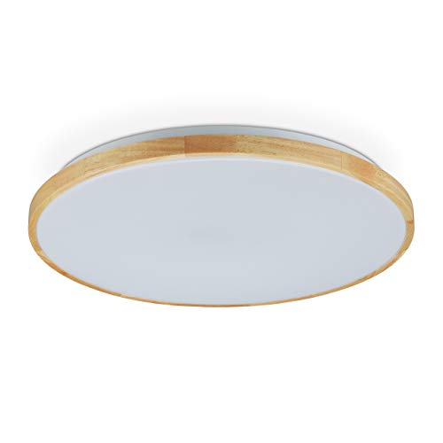 Relaxdays Taklampa Trä Rund 28 Led Taklampa Vardagsrum Sovrum Hall Modern 42 W Diameter 50 Cm Natur / Vit