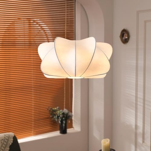 Lfoute Hänglampa Modern Taklampa I Tyg Wabi-Sabi Hängande Lampa Lampskärm I Silkestyg Metall Justerbar I Höjdled Medeltida Ljuskrona För Vardagsrum Sovrum Matsal Hall Kök Art Deco Vit(50CM)