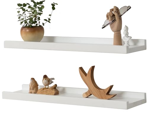 Gieanoo Vita flytande hyllor, massivt ekträ 50 cm bild kantuppsättning av 2 kryddställ väggmonterad med läpp displayhylla dekorativa vägghyllor för vardagsrum, kök, sovrum, hall