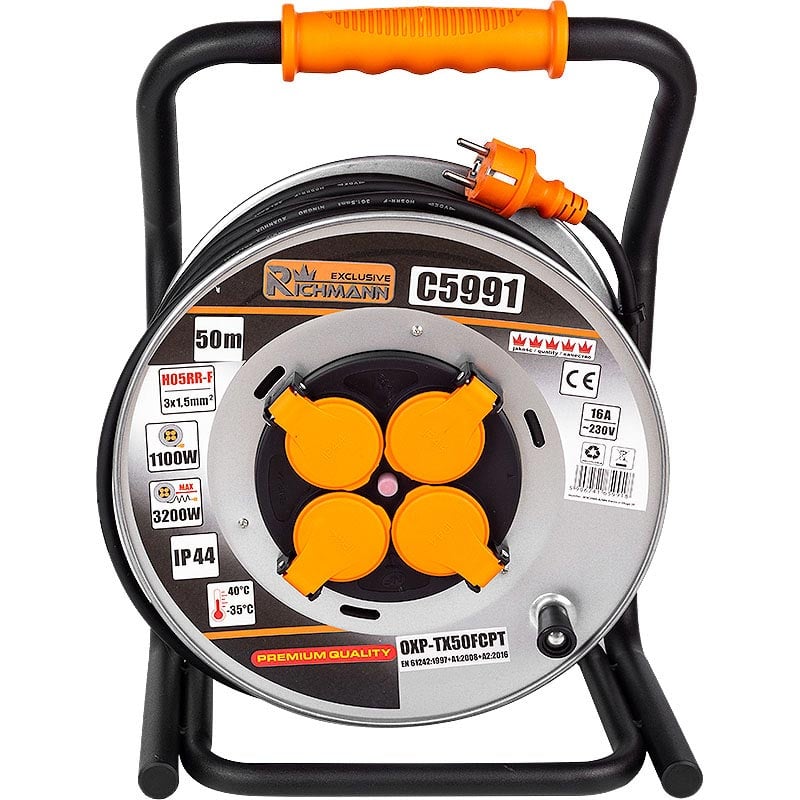 Förlängningssladd på kabelvinda Richmann C5991; 50 m; 3x1,5 mm²