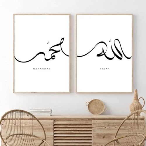 Modern islamisk kalligrafi Dukmålning, muslimsk, arabisk, koran, koranen, väggkonst, affisch, tavla vardagsrum, hem 19,6" x 27,5" (50x70cm) x2 Ingen ram
