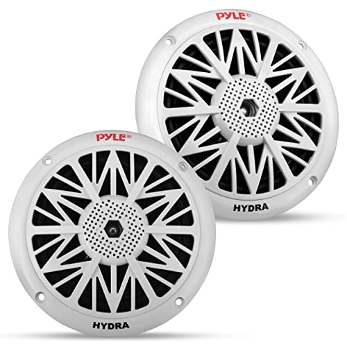 Pyle 5.25 Inch Dual Marine Speakers - 2 Way Waterproof and Weather Resistant Outdoor Audio Stereo Sound System with 100 Watt Power, Polypropylene Cone and Cloth Surround - 1 Pair (White)