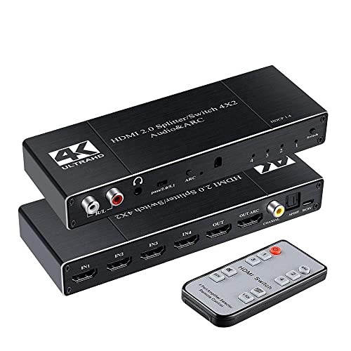 NÖRDIC HDMI Switch 4 till 2 med Audio Extractor och ARC, 4Kx2K i 60Hz, HDCP 1.4, 5.1 Surround, Metal