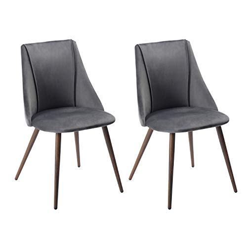 39F FURNITURE DREAM Set med 2 mitten av århundradet matsal, stora sidostolar i mjuk sammet, ryggstöd, metallben för kök, vardagsrum, tyg, grön, 52,5 x 49,5 x 83 cm