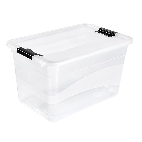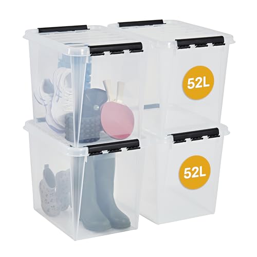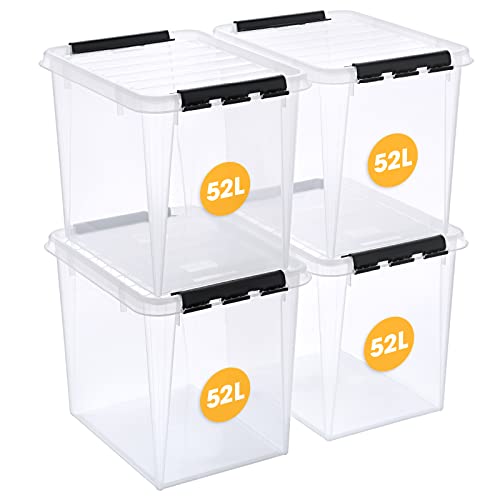 SmartStore 52 L stora plastförvaringslådor med lock, 4-pack, förstärkt, klar, 10 års garanti, livsmedelssäker, klämlåst, stapelbar och stapelbar, BPA-fri, L 50 x B 39 x H 41 cm