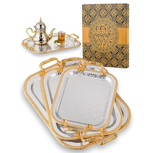 shoxil Serveringsbricka stor – dekorativ bricka med handtag, frukostbricka för sängen – elegant metallpalett i 3 storlekar (39 x 27 cm, 46,3 x 32,5 cm, 52 x 37 cm)