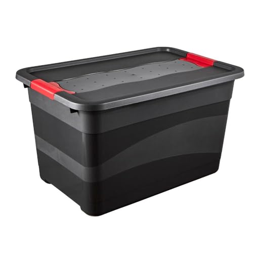 keeeper Transportbehållare med lock och glidlås, extra stabil, 59,5 x 39,5 x 34 cm, 52 l, hörnhård, grafit grå