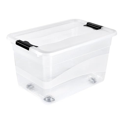 keeeper Förvaringslåda med hjul, lock och skjutlås, 59,5 x 39,5 x 35 cm, 52 l, Konrad, genomskinlig