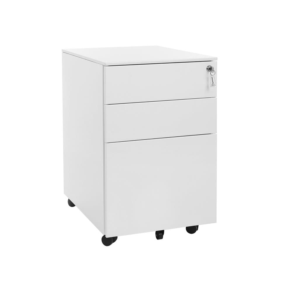OFITURIA ® Vit Metallisk Arkiv med Lås för kontor, Byrå med hjul, 3 Lådor, Kommer Monterad 52x39x60 cm