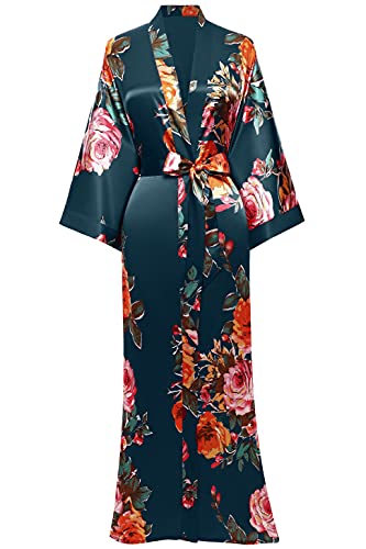 BABEYOND Kimono för kvinnor satin kimono cardigan lång tryckt rock kinesisk japansk stil för nattkläder flicka bindning fest bröllop pyjamas fest 135 cm/53 tum (mörkgrön)