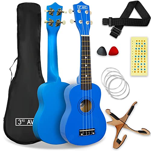 3rd Avenue Sopranukulelepaket för nybörjare från 3rd Avenue 53 cm (21 tum) – fodral, stativ, axelband, strängar, plektrum och klistermärken för greppbräda – blå