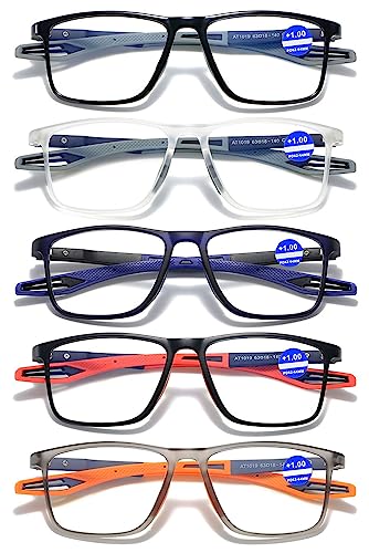 KOOSUFA Anti-blått ljus läsglasögon män kvinnor fjädergångjärn rektangulär ultralätt TR90 ram arbete läsglasögon läshjälp anti-trötthet glasögon med tjocklek 0,0 1,0 1,5 2,0 2,5 3,0 3,5 4,0, Set med 5