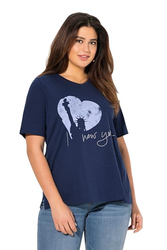 Ulla popken damer stora storlekar överdimensionerade plus size t-shirt, New York, klassisk, V-hals, halvärm, bläck blå, 54-56