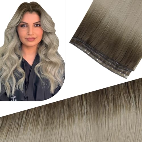 Fshine Hårförlängningar av silkeslent äkta hår som sys in, 55 cm, 25 g, jungfruhår, balayage, askblont till blont, färg 9A 10 800