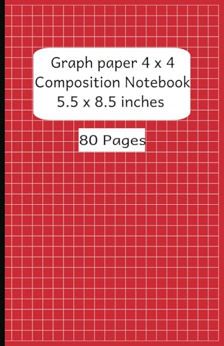 Graph paper 4 x 4 composition notebook | 5.5 x 8.5 in (13.97 x 21.59 cm) 80 pages, Paperback (Red)