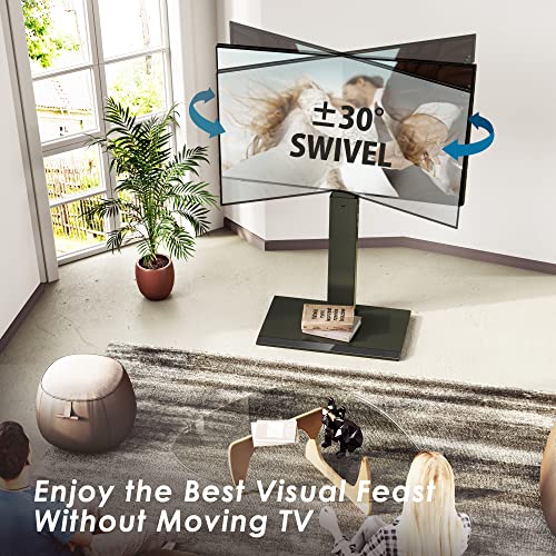 Universellt svängbart TV-stativ/basbordsskiva TV-stativ för 21 till 55 tums TV-apparater med 90 graders vridning, 4 nivåer justerbar höjd, kraftig härdat glasbas, rymmer upp till 45 kg, HT02B-002