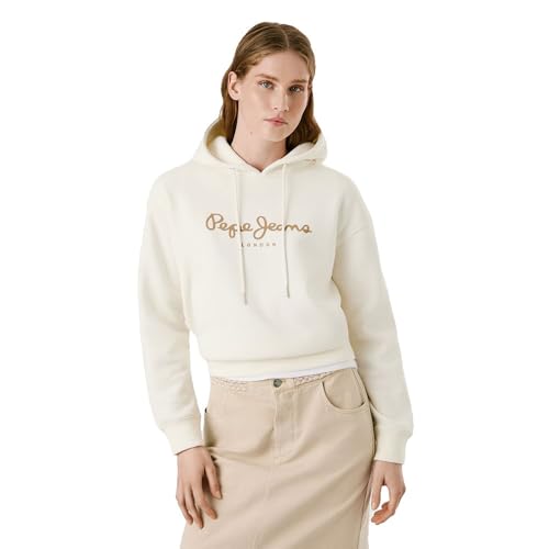 Pepe Jeans dam BADDY huvtröja sweatshirt, beige (OYSTER WHITE), S, Beige (ostronvit), S