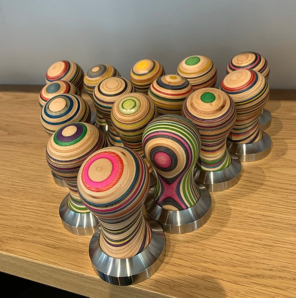 58,5 mm tamper med självnivellerande valnötshandtag och dubbel fjäderbelastad kalibrerad design — Passar 58 mm filterhållare för exakta konsekventa bilder