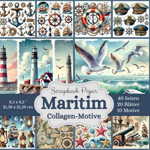 Ahoi, Kapitäne! Setzt die Segel mit unserer maritimen Scrapbook-Papierkollektion. Collagen-Motive zu, ausschneiden: Bastelpapier in 10 verschiedenen ... Blätter). 8,5 x 8,5 Zoll (21,59 x 21,59 cm)