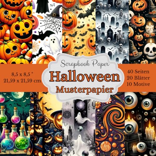 Scrapbook-Papierkollektion: Halloween Motivpapier - für schaurige Dekorationen: Bastelpapier in 10 verschiedenen Designs mit gruseligen und süßen ... . Größe: 8,5 x 8,5 Zoll (21,59 x 21,59 cm)