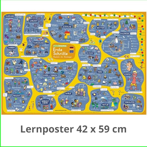mindmemo Lernposter - Erste Schritte - Deutsch für Anfänger - spielend Deutsch lernen Kinder: Vokabeln lernen mit Bildern Lernhilfe Poster DIN A2 42x59 cm PremiumEdition in Transportrolle
