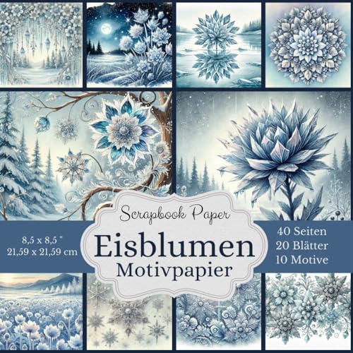 Scrapbook-Papierkollektion mit fantasievollen Eisblumen: Große Motive, Eisblumen, Eiskristalle, winterliche Muster in Weiß und Blau. 10 Designes, 20 ... 40 Seiten. 8,5 x 8,5 Zoll (21,59 x 21,59 cm)