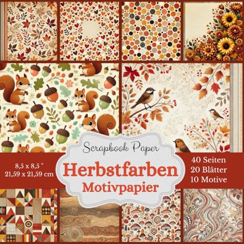 Scrapbook-Papierkollektion in herbstlichen Farben.: Motivpapier mit Muster in Herbstfarben, Natur, Tiere. Inhalt: 20 Bastelpapiere (10 verschiedene ... Format: 8,5 x 8,5 Zoll (21,59 x 21,59 cm)
