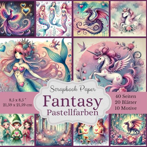 Scrapbook-Papierkollektion Fantasy-Motive in zarten Pastellfarben: 40 Seiten (20 Blätter) Bastelpapier in 10 verschiedenen Designs mit märchenhaften ... x 21,59 cm). Große Motive für DIY-Projekte